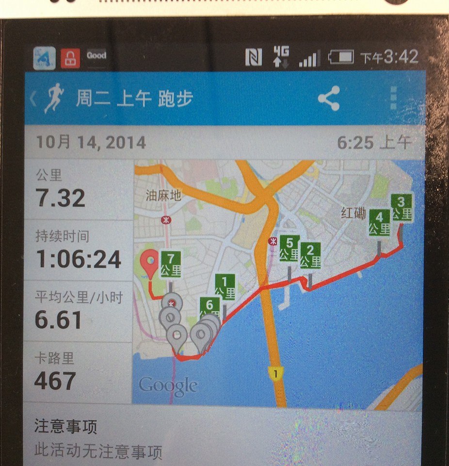 2014/10/14 晨 7.2 公里 累積 18.65 公里