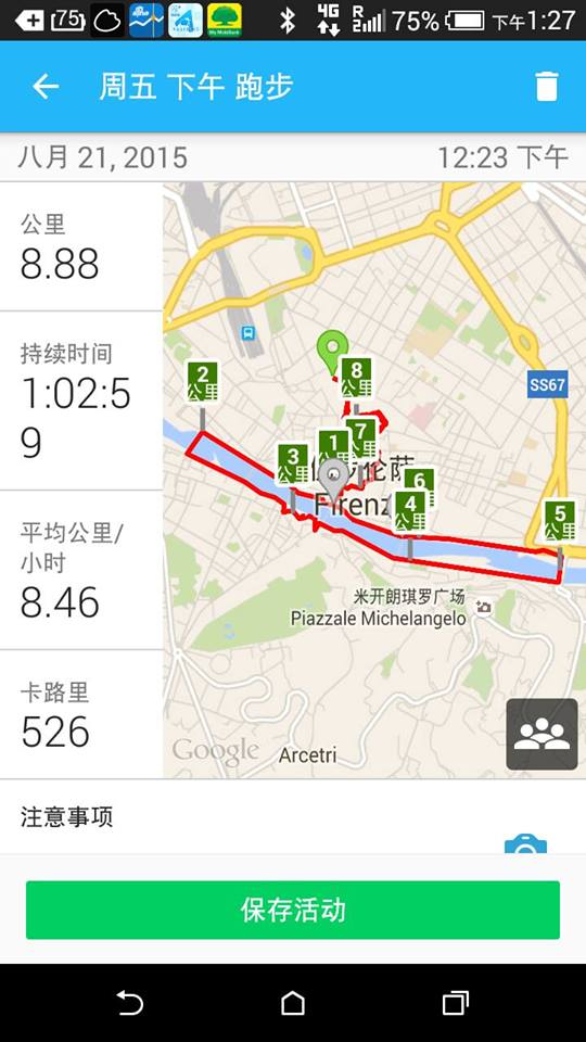 RDP 45 佛羅倫斯 2015/8/21 晨 8.88公里