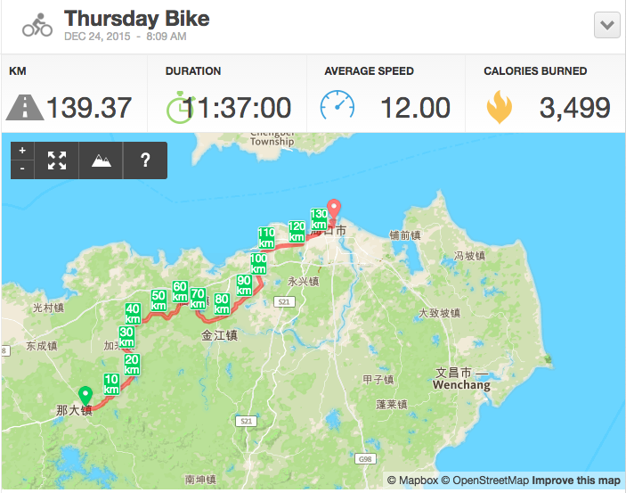 2015/12/24 儋州 到 海口 139 公里