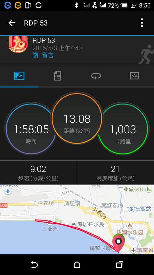 RDP 53 海南 三亞 椰夢長廊 2016/05/03 13.08公里 (沙灘跑)