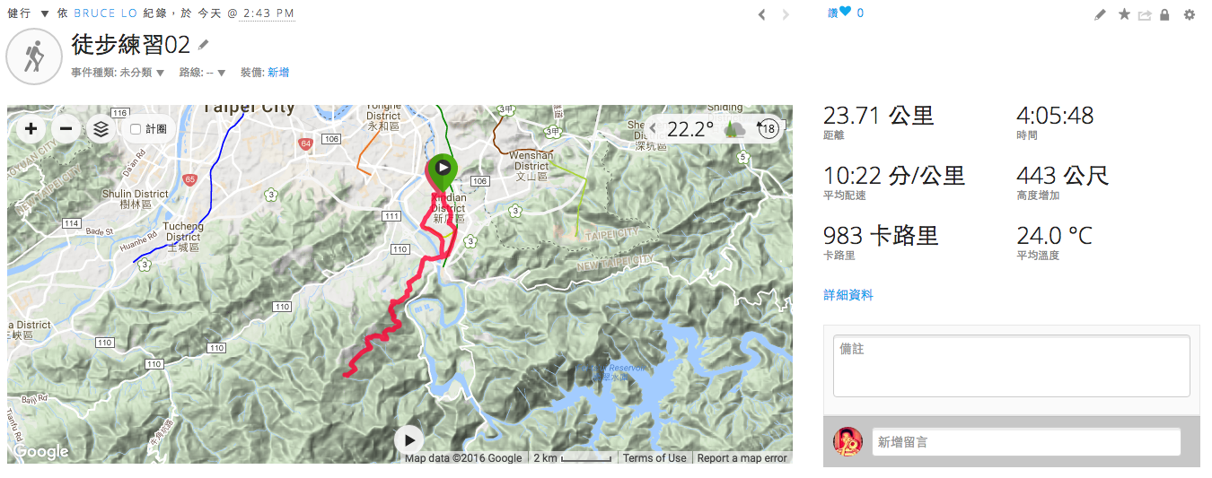 2016/11/26 大坪林 到 康橋秀岡校區 (來回)