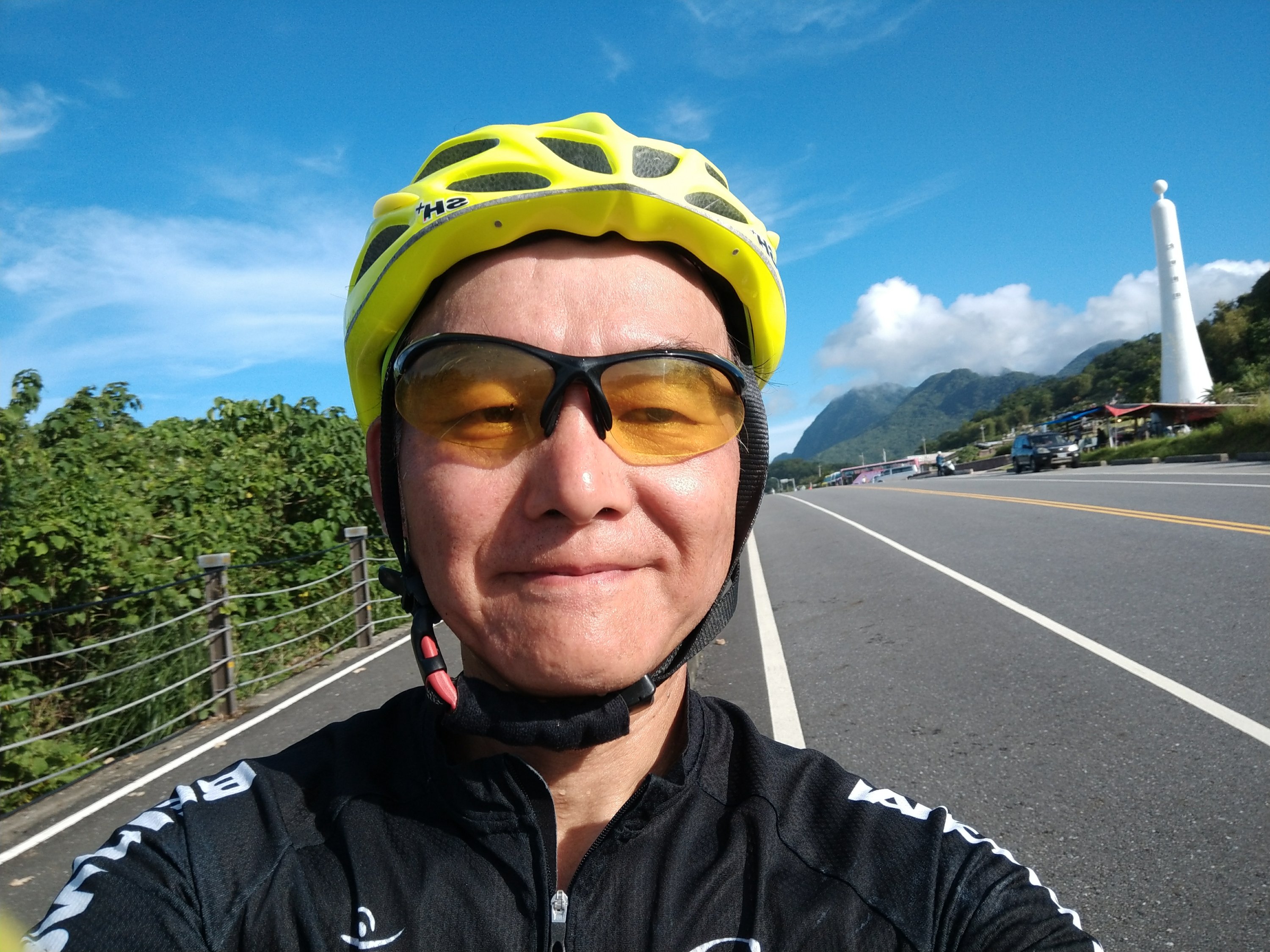 今早時速才10公里,這速度說明兒子體能明顯無法騎太遠。反正內外胎都破,只好叫計程(出租)車。正在躊躇要不要兩人一起上車,兒子疑問這是否偷作幣,因為這樣環島會少騎一段路。我隨即決定自己單騎,讓兒子坐車回花蓮,先看醫生吃下感冒藥,再補養體力。我會如此決定,是因為半年前才騎完花東365,沒感覺那路段的困難,應該有能力再騎120公里。這時約下午一點,我父子兩才騎50公里,要再騎120公里,平均時速要20以上才可在7點前到花蓮。因為接進市區路會好騎,而且有燈,我估計可在天黑之前離開山區。沒太多解釋,司機和兒子疑惑著離去,因我要爭取時間趕路。到北迴歸線中心時拍了相,信心滿滿的可在七點前(甚至更早)到花蓮和兒子會合。