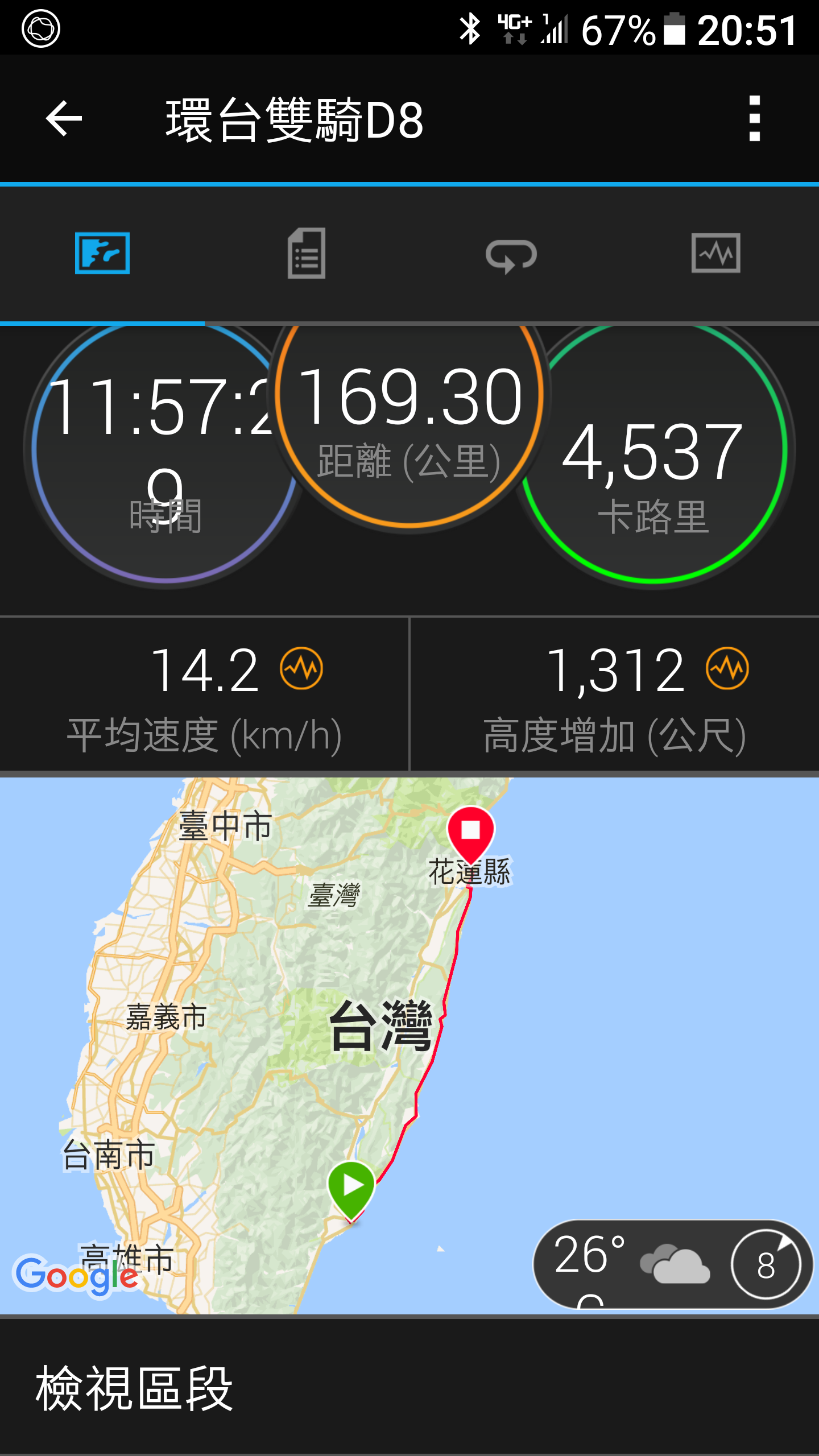 在這之前,有幾分鐘的極度恐懼。那時前方有一段很長的土石流路段,我牽車慢慢的過。突然一陣狗吠聲傳來,越來越多,越來越近。右邊是海濤拍打聲,左邊完全漆黑,感覺有十多條的狗,向我撲來。一時之間,不知如何處理,身體冒了些冷汗。擔心那狗沒拴住,向我衝來。想要快速離開,但是好像前面也有狗吠聲越來越近向我而來。有那麼幾秒鐘,不知所措的停下,左手下意識的想揮動起來,但是一想,那麼黑的空間,手上也沒防身物,只能聽天由命。快點向前走吧,越停留吠聲越大。也許狗也看不到,只是聽聲音在防衛壯膽的叫。這段毫無預期的騎行插曲,雖然只有幾分鐘,但也夠了,應該會列入我永難忘懷的經歷之一。