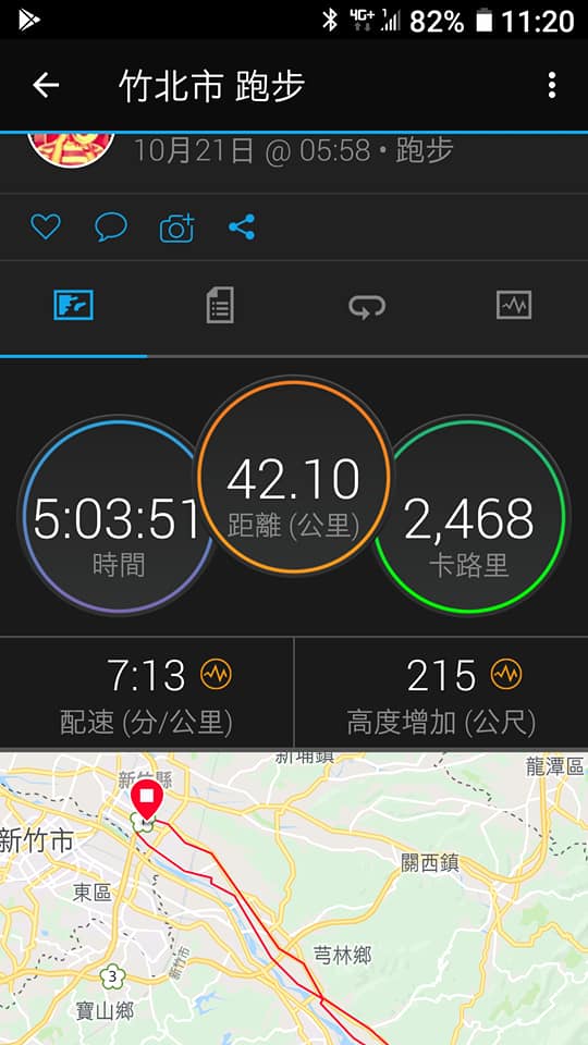 RDP 84 新竹 RDF 21 朝善/B91T 2018/10/21 42.10 公里 全馬3 :臺灣國際馬拉松(in新竹) 淨時間 05:03:14