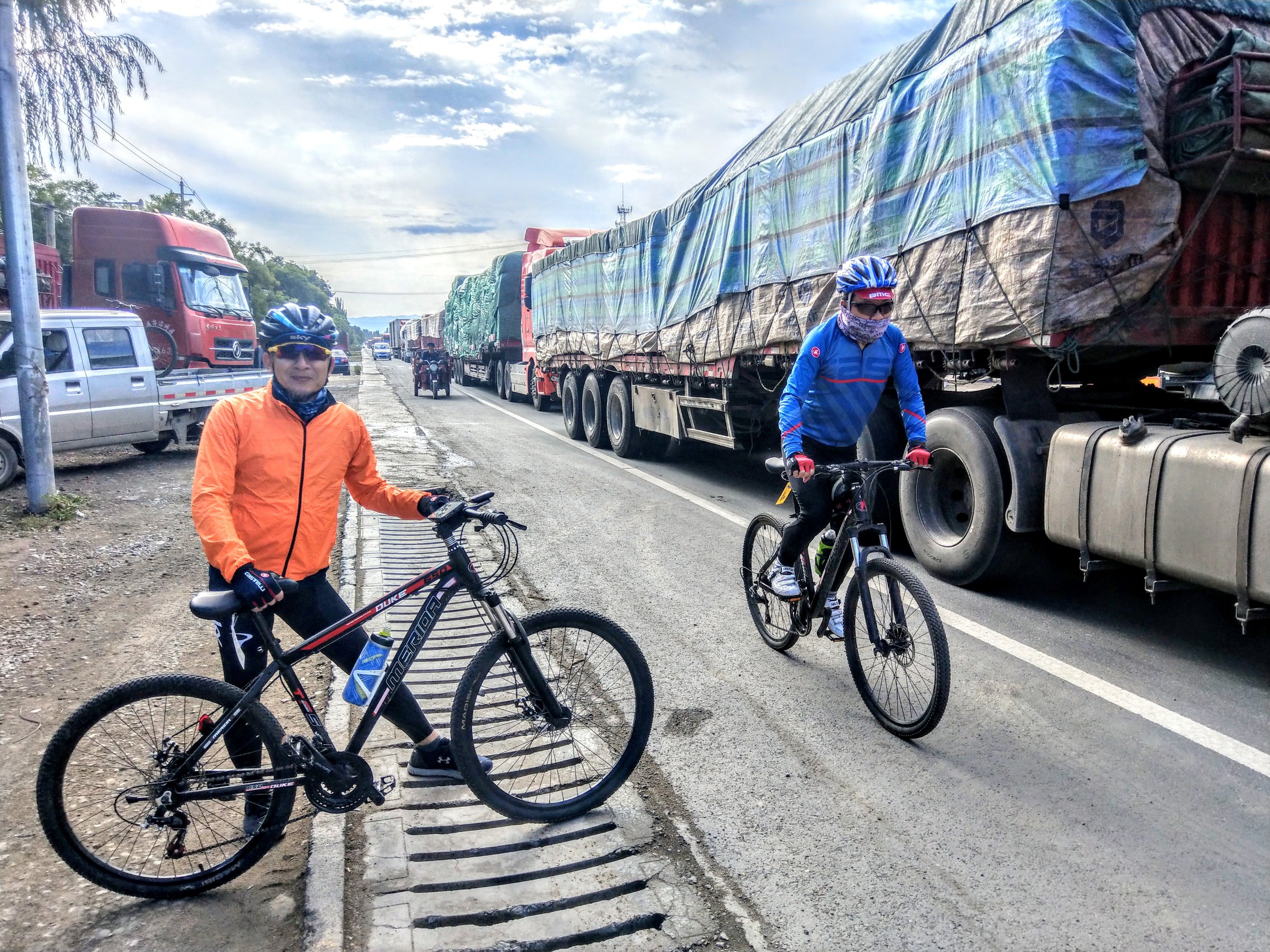 今天一路平順,車量少了一些,路面沙石也少。不過,大卡車的喇叭聲還是時而響起。