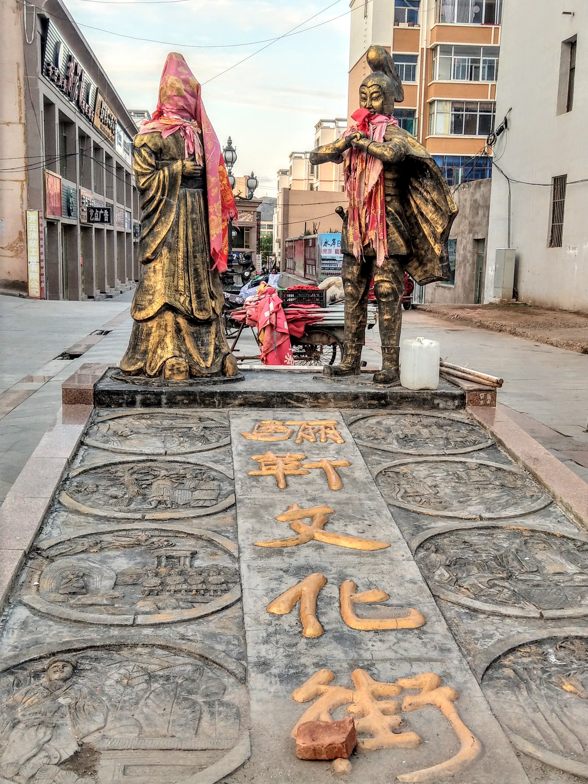 傍晚經過武威市-“河西四郡的第一郡”,但沒進去,而是進入永昌縣,經過一座城牆。問了當地人,說那是“鼓樓”。可能和西安市看到的鼓樓作用一樣。我注意到上面其中有個匾額上寫“懷柔西域”。
