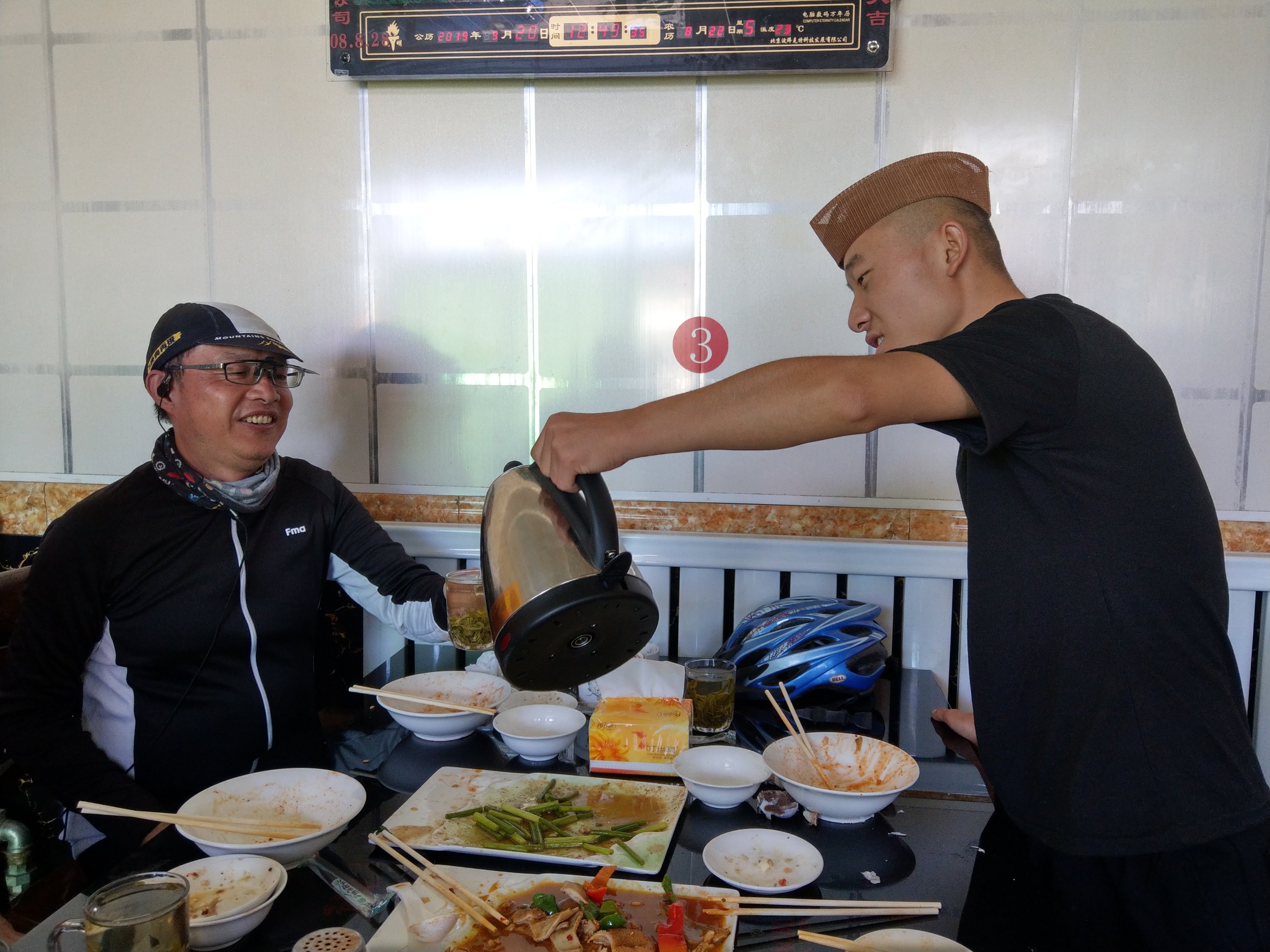 清真餐廳,不能喝酒。服務生,一直加茶水。對我們騎車,而且從台灣來,很好奇,很友善。