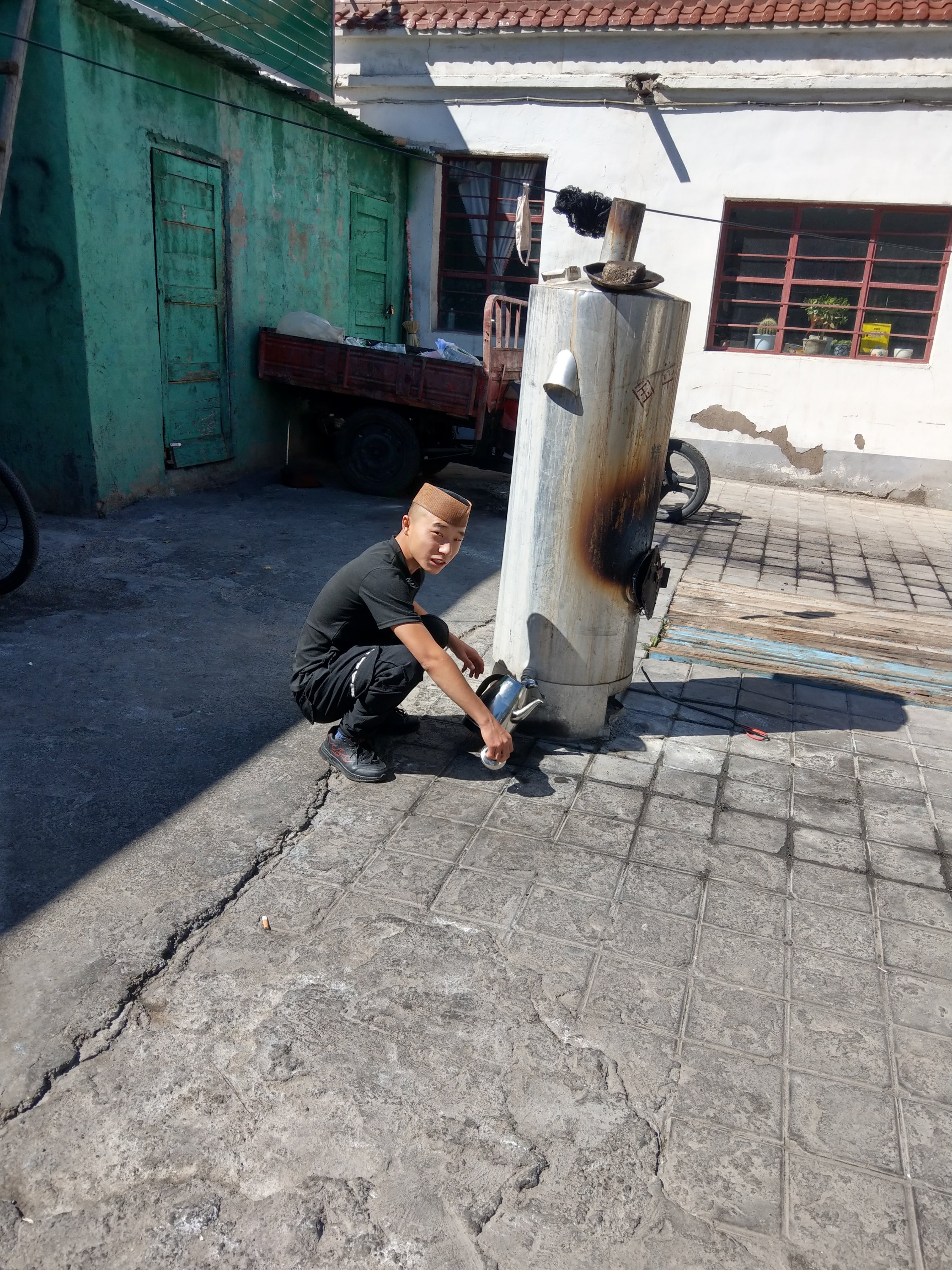 中午吃飯的店小二說:他們用鍋爐煮開水。上面有一個小孔,可以倒水進去。