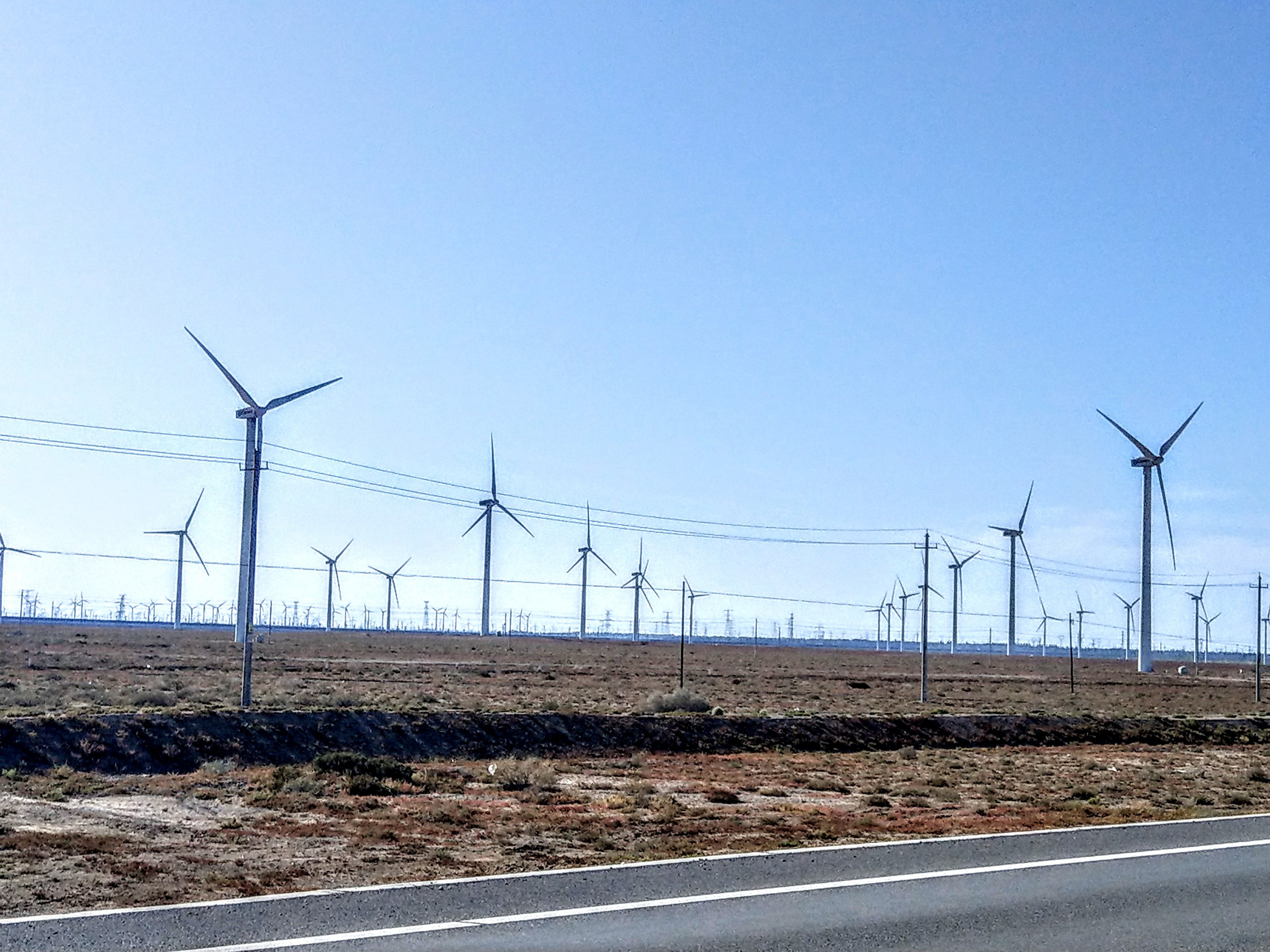 上張圖是風力發電廠,下張圖是太陽能電廠,都是一大片,有幾公里長。