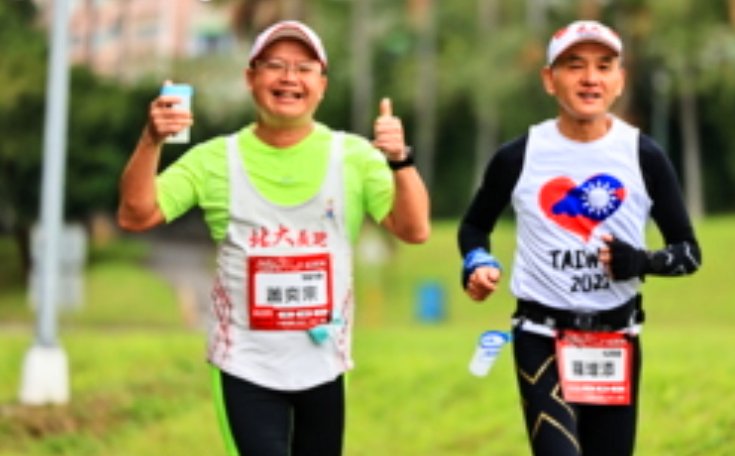 一個人隨興跑,沒有在看時間;路線又很熟悉,有一點悶;還好最後幾公里,遇到了跑團的前會長蕭醫師,說說笑笑,帶來今年的好彩頭。