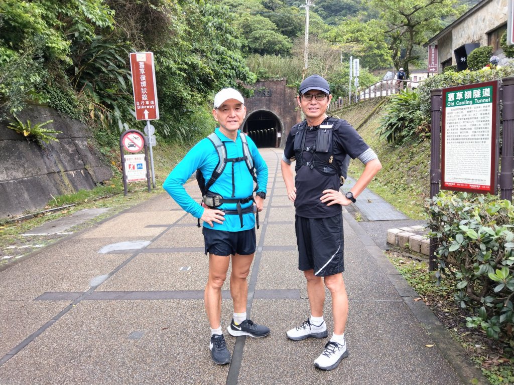 在接近福隆車站前5公里,有一個抉擇需要處理。繼續跑會經過三貂角燈塔,這裡是台灣的「極東」點;或者穿過山跑舊草嶺隧道。估算時間後決議,還是選擇後者。這條隧道也很有意思;曾經是東南亞最長的鐵路隧道,有2.167公里長,現在已經沒有鐵軌了(鐵軌用畫在地上很有創意),在裡面跑步別有滋味。