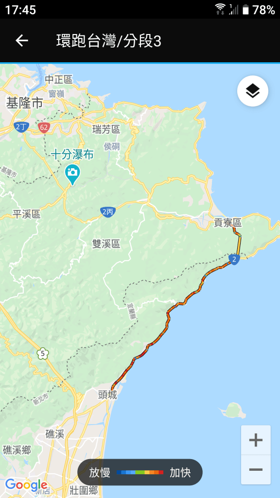 頭城車站出來往台2線跑,過了外澳後可以接到沿海步道(自行車或散步都很適合),不是假日,完全沒有遊客,在海浪的拍打聲中參差一點腳步前進的腳踏聲,有一種怡然開闊的感覺。台2線基本上是延著北海岸走,但不是全部都有海邊步道。大約過了大溪就沒靠海的步道;感受不到海的聲音,只能回到台2線忍受偶爾穿梭的大卡車。二者相較之下,嚮往大自然似乎是人類的天性,能夠感受到被大海擁抱的跑步真是難得的享受。今天的雨只象徵性下一會兒,配合的陰天夾著溫和的海風拂面,邊跑步邊聽海水移動的聲音,療愈的情境似乎把跑步帶到另一個境界了。
