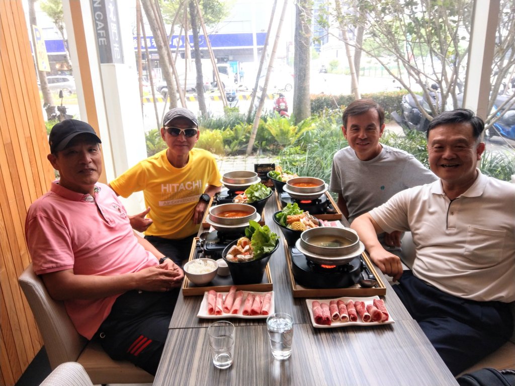 環跑的路線專程繞往竹北與輝哥會合,得到阿玉的高度讚許;並依約趕來跑後聚餐。有老同學相聚,跑步就不是重點了。在跑步儀式的媒介下展開天南地北的輕鬆話語;過去一萬多個擦肩而過的日子裡,在此時有明確的補充;曾經暗藏的秘辛往事也如流水般一洩而出;畢竟都已花甲之年了,過去認為的大事,相較於中壯年經歷的大小事物,現在看來都只是泯嘴一笑的單純往事而已。