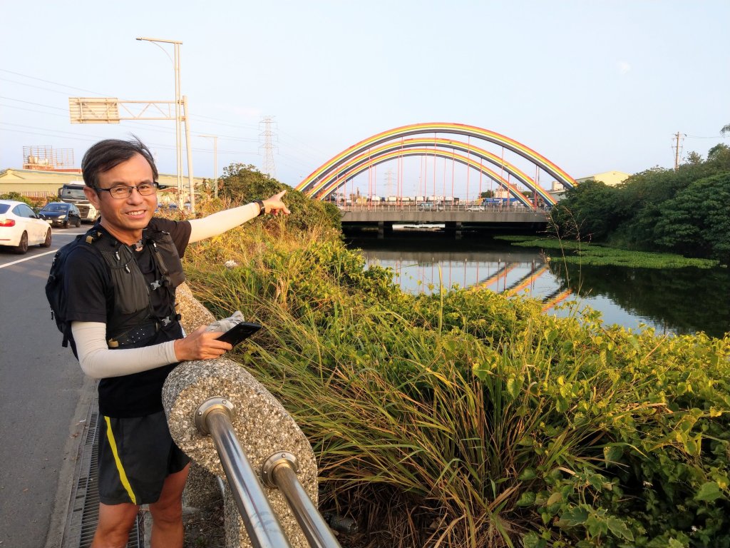 相同的距離,徒步所花的時間大約要多2至3小時。這次最後二小時的時候,體能已近耗竭,天色又暗的蠻快的,忙著趕路,沒有留下終點的照片;就用最後一張[彩虹橋]相片為終點照(這裡離住宿點還有10公里)。(註:每一段的終點,我們會照一張相片,做為結束儀式。)