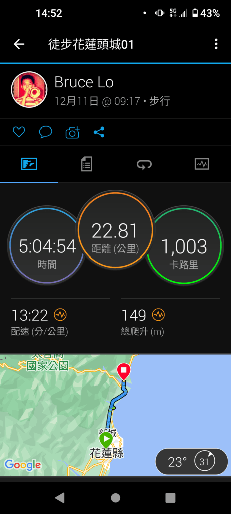 2022/12/11週日 花蓮車站 — 秀林 22.81公里 (入住:走過虹橋/太魯閣橋旁 )