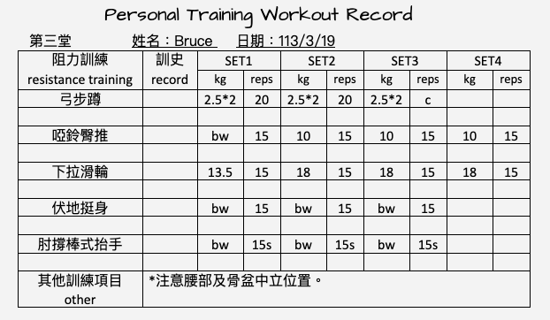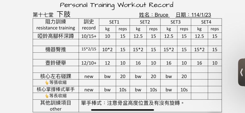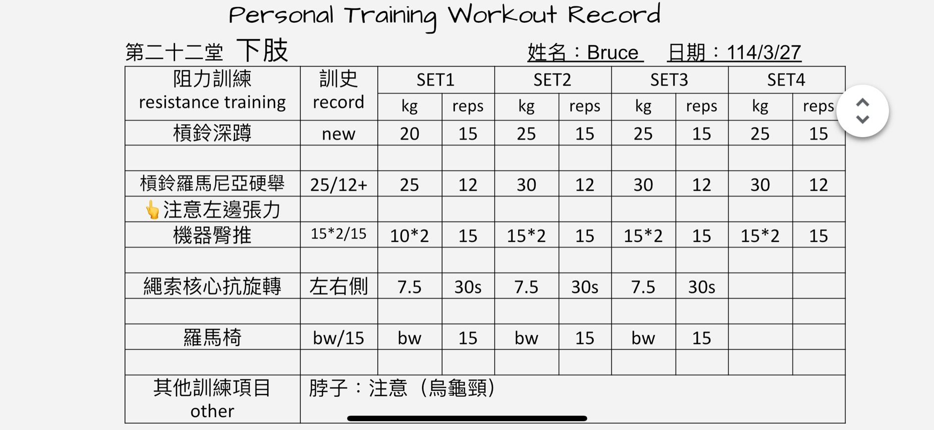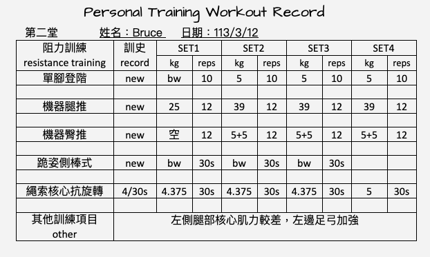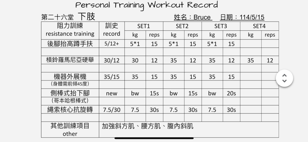 **所有動作訓練都幾乎用到核心 左側無力一直都在 也越來越明顯