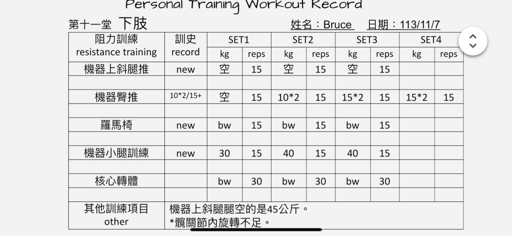 2024/11/07 #11 左側肌肉,有感!離二邊平衡還很遠。