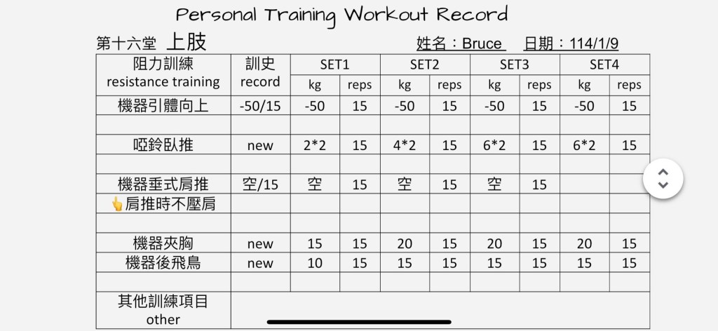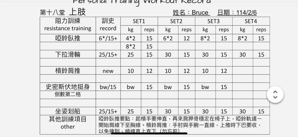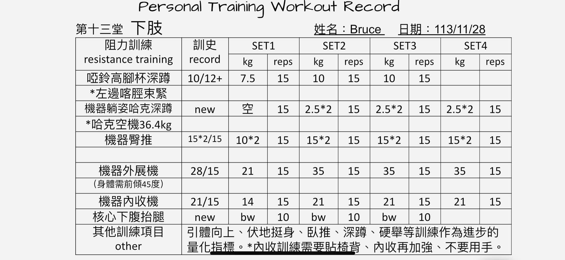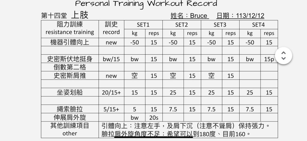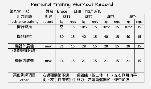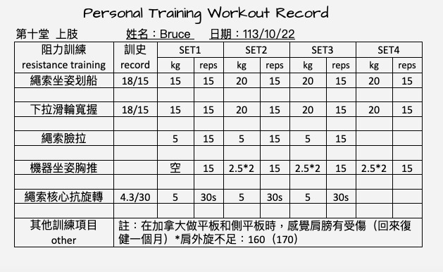 2024/10/22 #10 自我要求動作確實,重訓原理逐步加強。