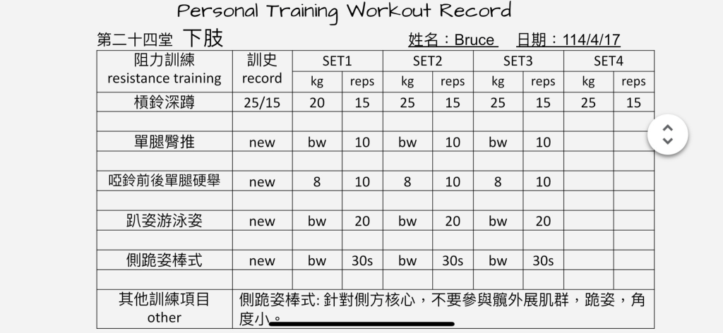 2025/04/17 下肢 #24 (左側力量漸漸進步 , 很慢, 但有感覺。)