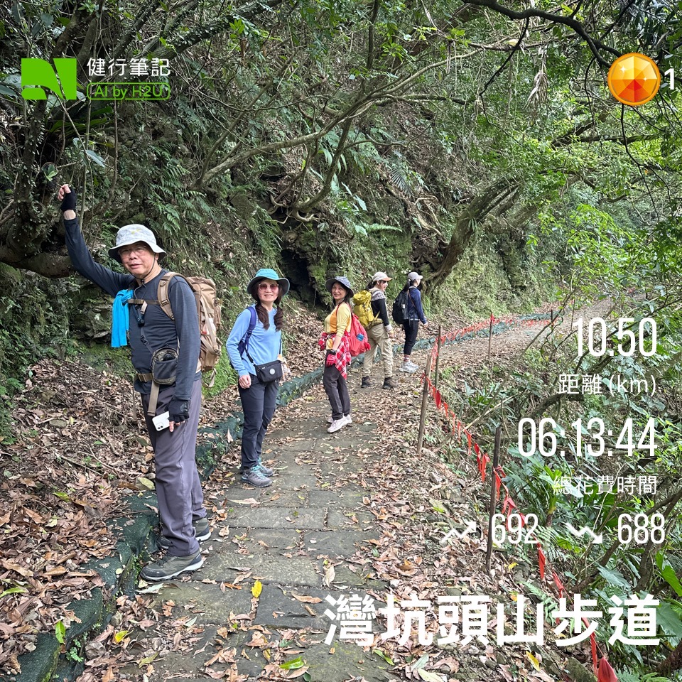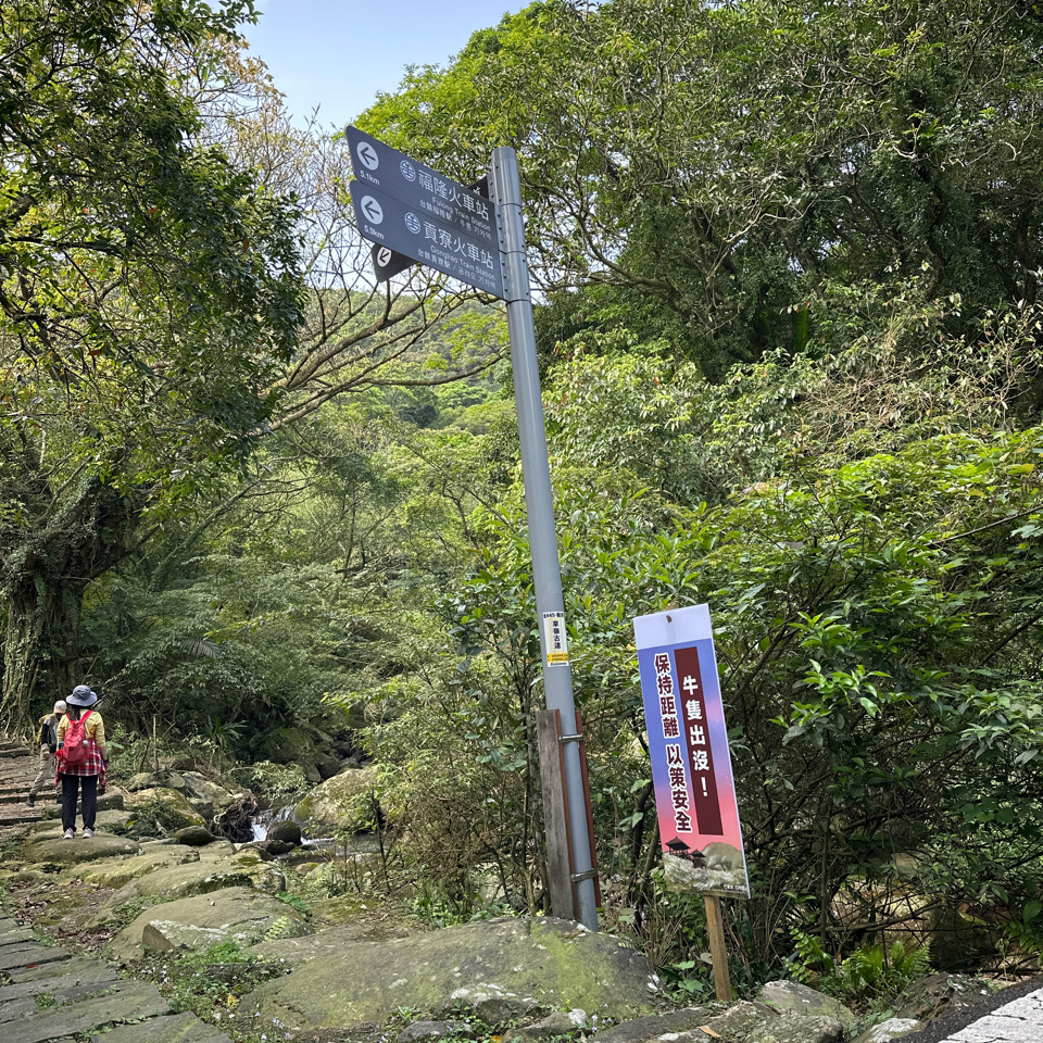 - 史上頭一遭,碰到牛擋路。翩翩就在最狹窄的路口。 雖然說牛很溫馴,但是那個山坡有一點點陡,如果牛脾氣發作,被踹傳下山;也是非常危險。 僵持了一陣子,只好沒路找路。 攀爬了一點點山頭繞過牛之後;繼續走。