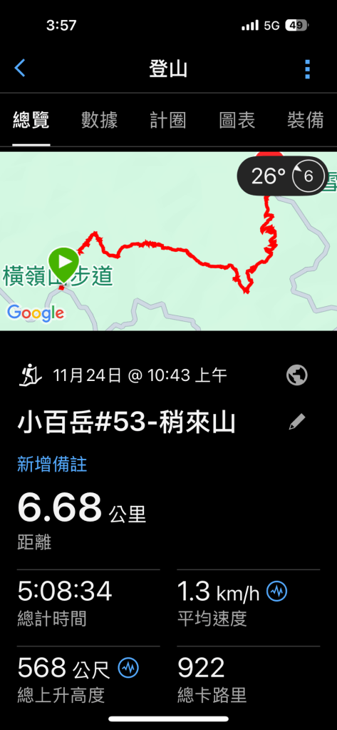 - 如果從大雪山登山口(35公里處)開始;來回大概只需三個小時,而且路上沒有不規則的石頭路;比較親民。我們這次走的路徑有一點點挑戰;花了5小時多。