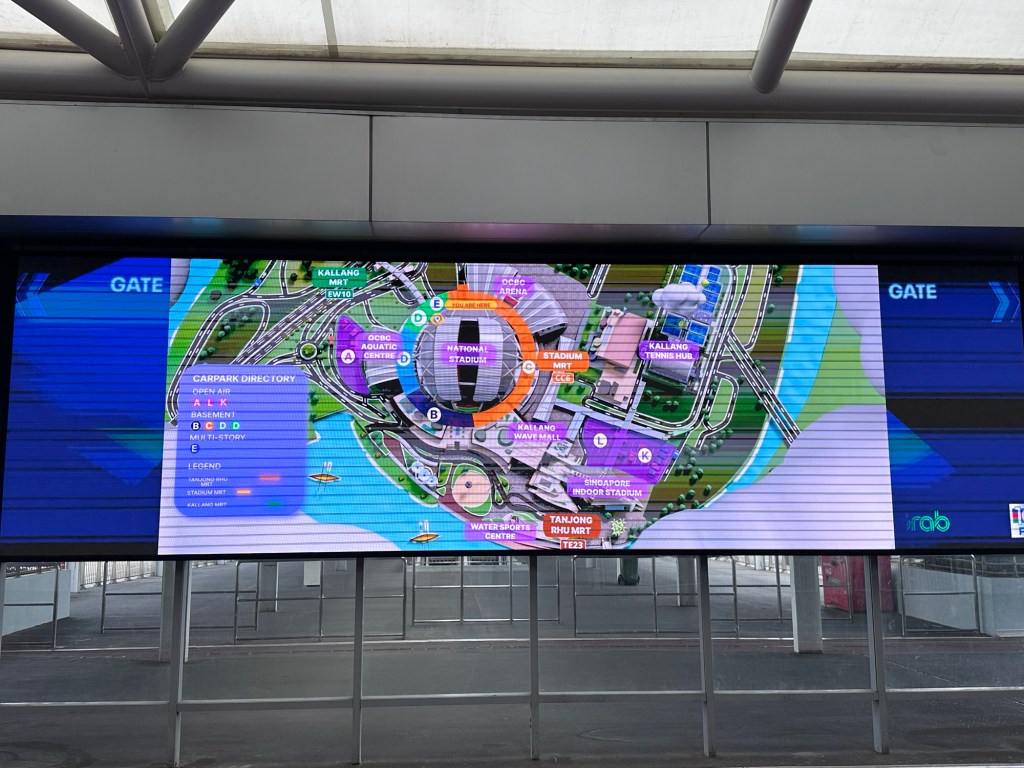 體育場有很多看板。液晶看板常常會變動資訊;相信辦演唱會的時候,進出的說明會很清楚。