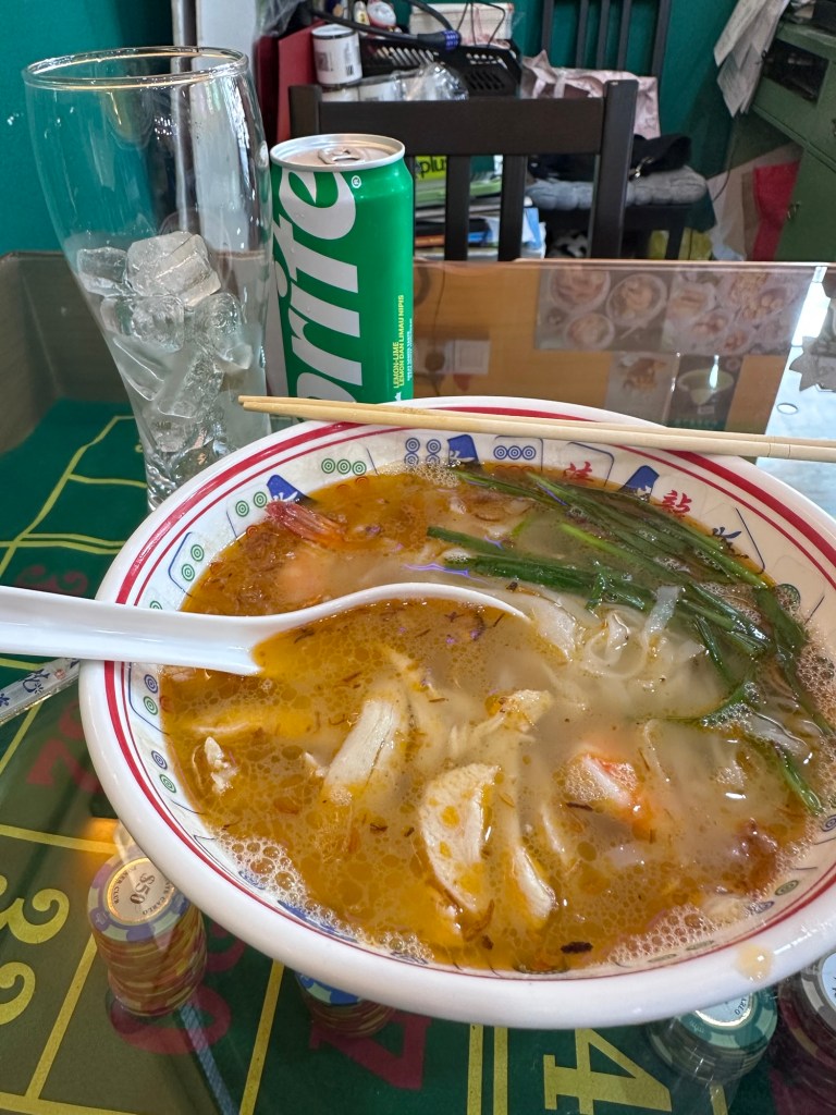 跑完吃一碗鮮蝦麵,配Sprite;$10新加坡幣,但是還要外加9%的税。