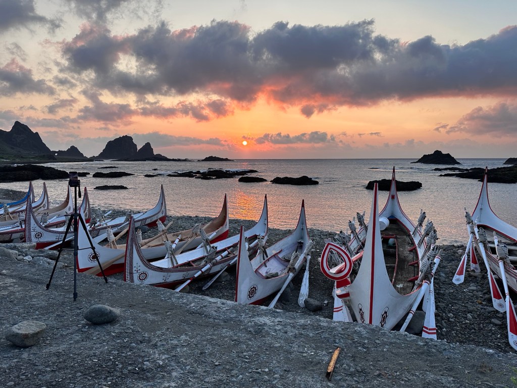 2. 看日出:解說的簡老師強調,蘭嶼的日出與眾不同,原因是只有這裡有拼板船(舟)當配景。
